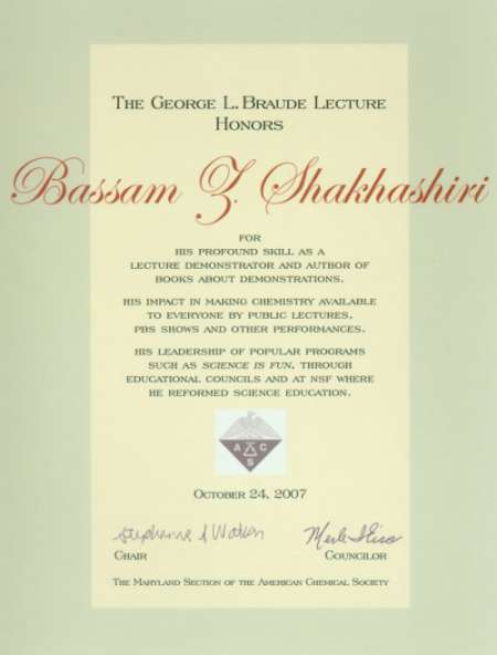 The George L. Braude Lecture Honors Bassam Shakhashiri Back to Science is Fun homepage