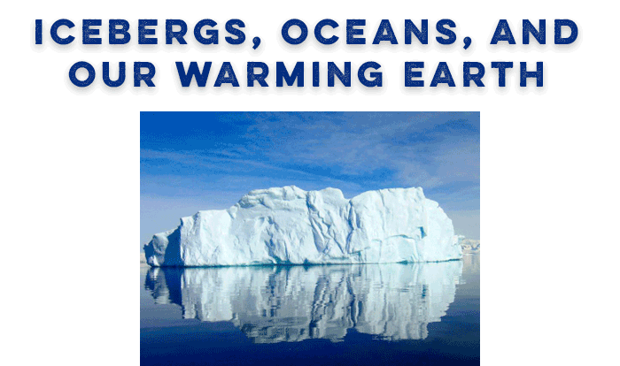Icebergs are formed from glaciers that are moving off the coast of the land that supports them, such as Greenland. When the tip of the glacier moves far enough off the land, it is no longer supported by the land and can break off. This is called “calving”; like a cow giving birth to her calf, the glacier gives birth to an iceberg as shown in the series of images below. Your addition of a micro “iceberg” to the water in your container was analogous to a calving glacier. The formation of an iceberg is represented by what happened when you added your micro “iceberg” to the water in the container. Based on the evidence from your experiment, what do you conclude about an iceberg and the sea it enters?